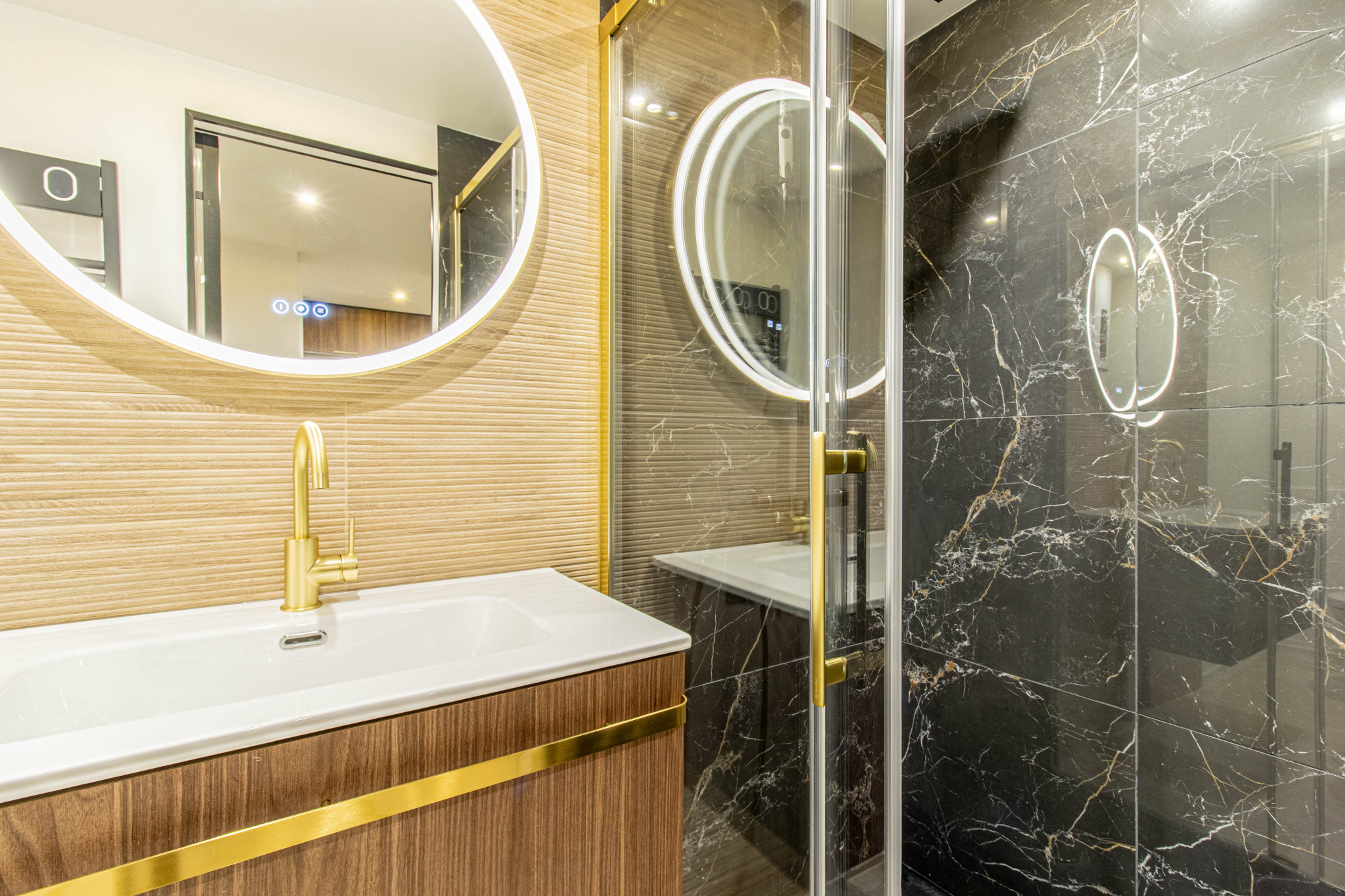 La salle de bain, entièrement neuve, propose des finitions soignées ainsi que des équipements contemporains.