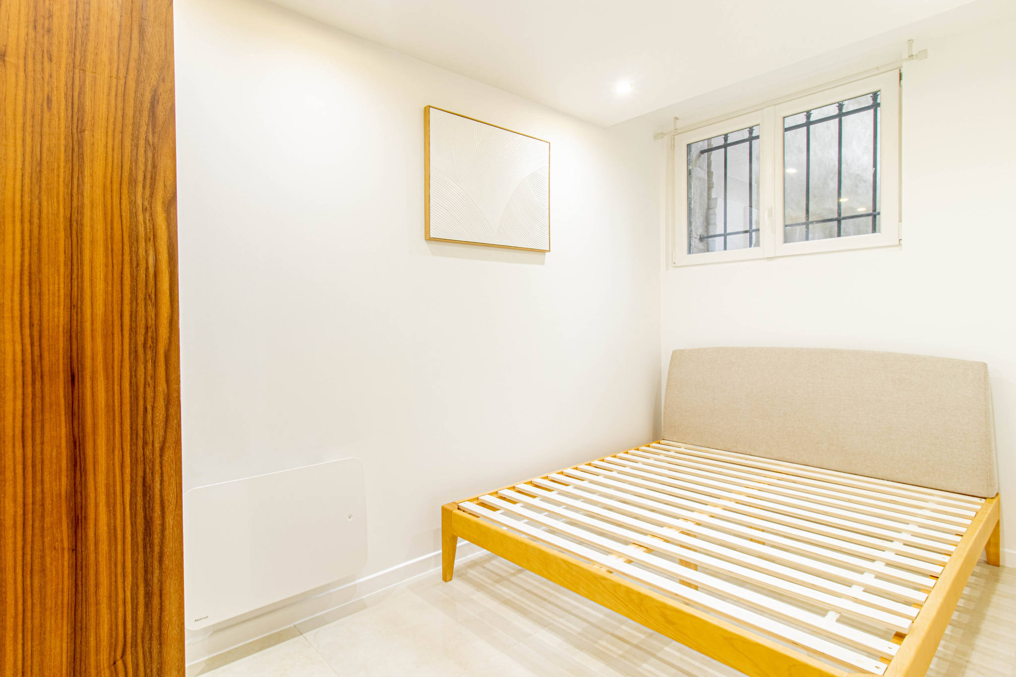 L’appartement dispose également d’une chambre sur le même niveau, parfaitement agencée et très fonctionnelle.