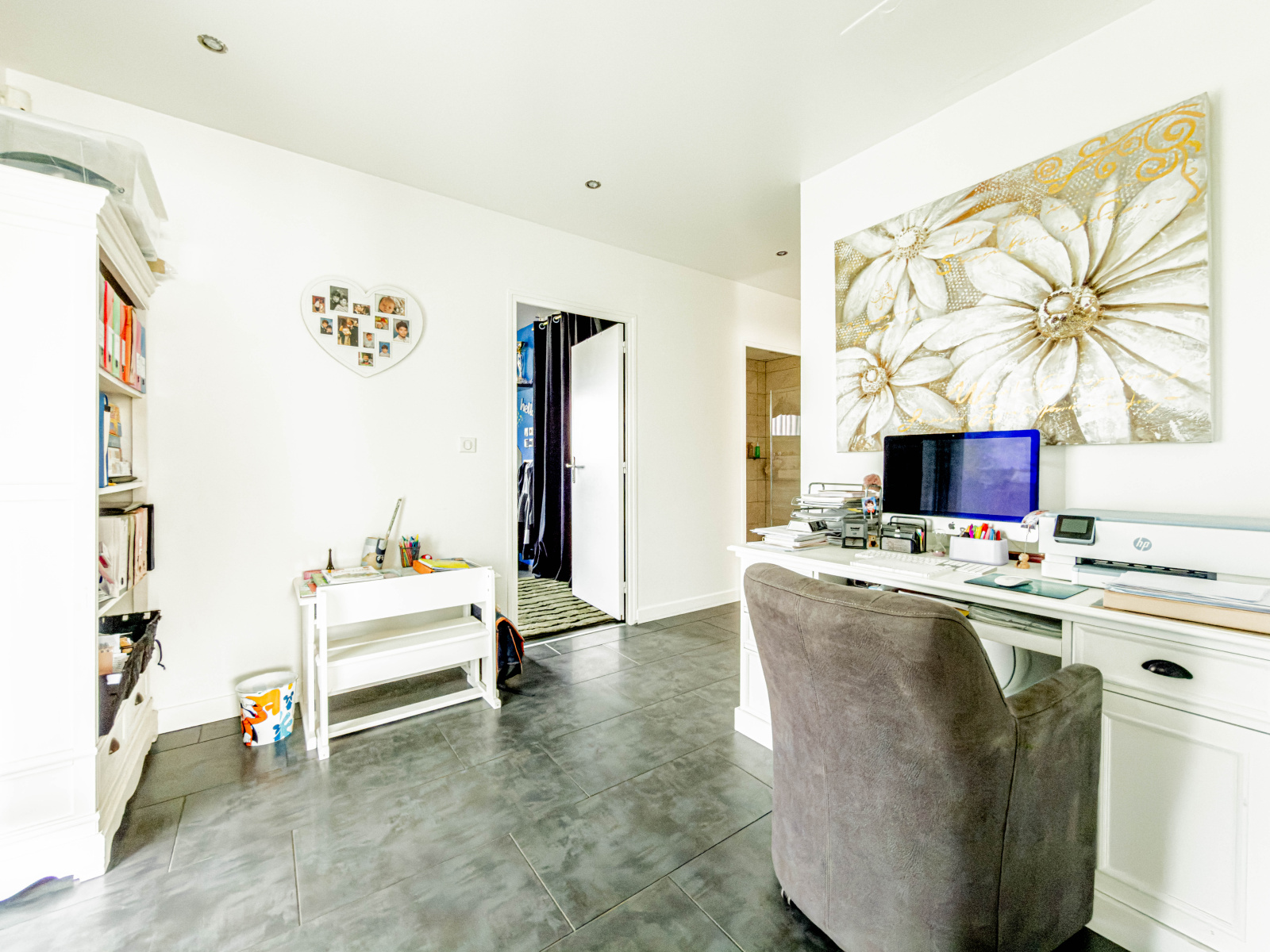 - Un bureau pouvant servir de pièce de télétravail