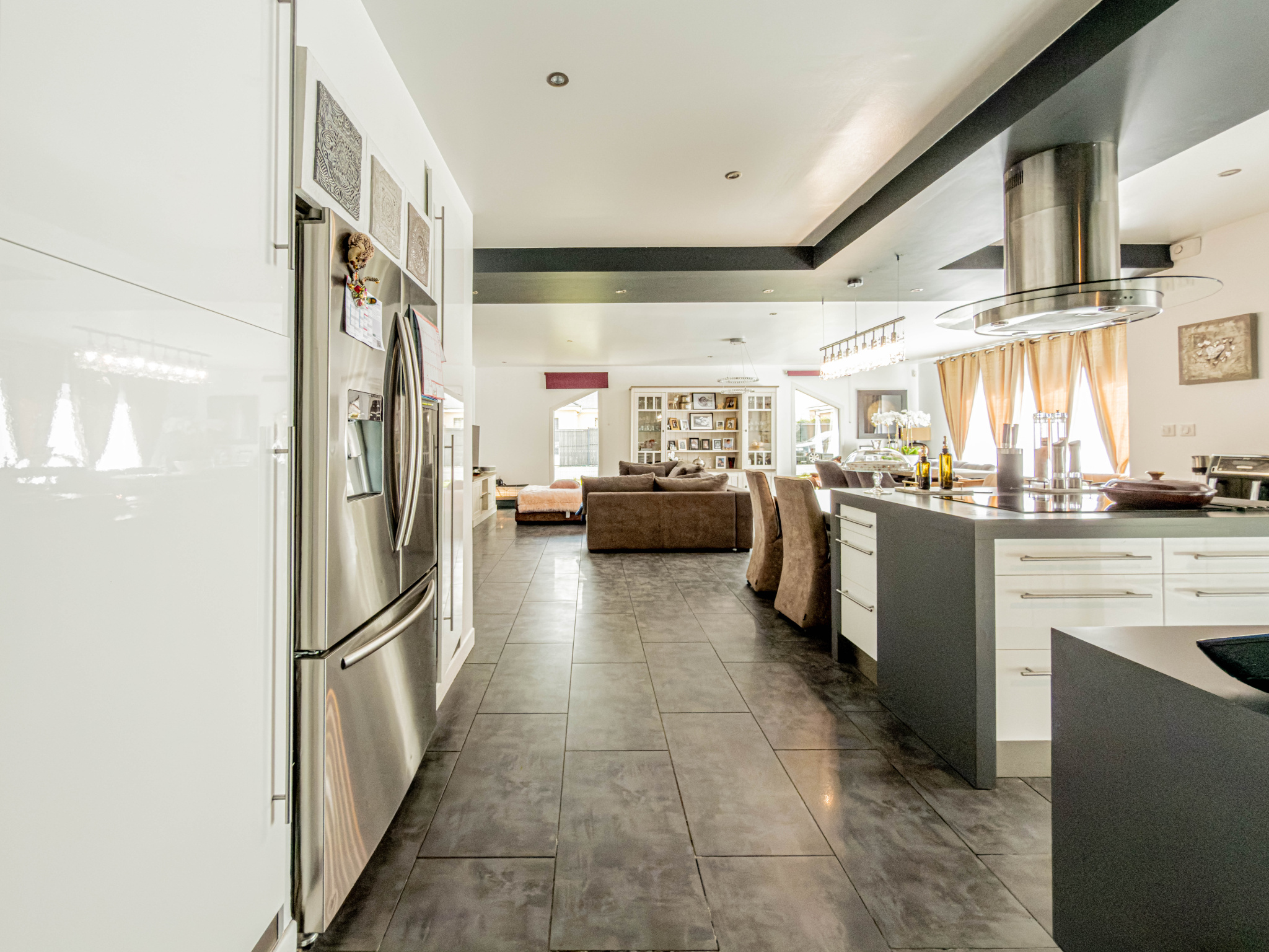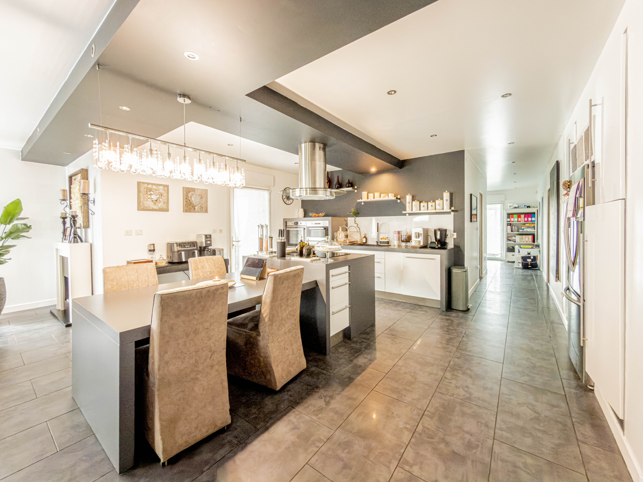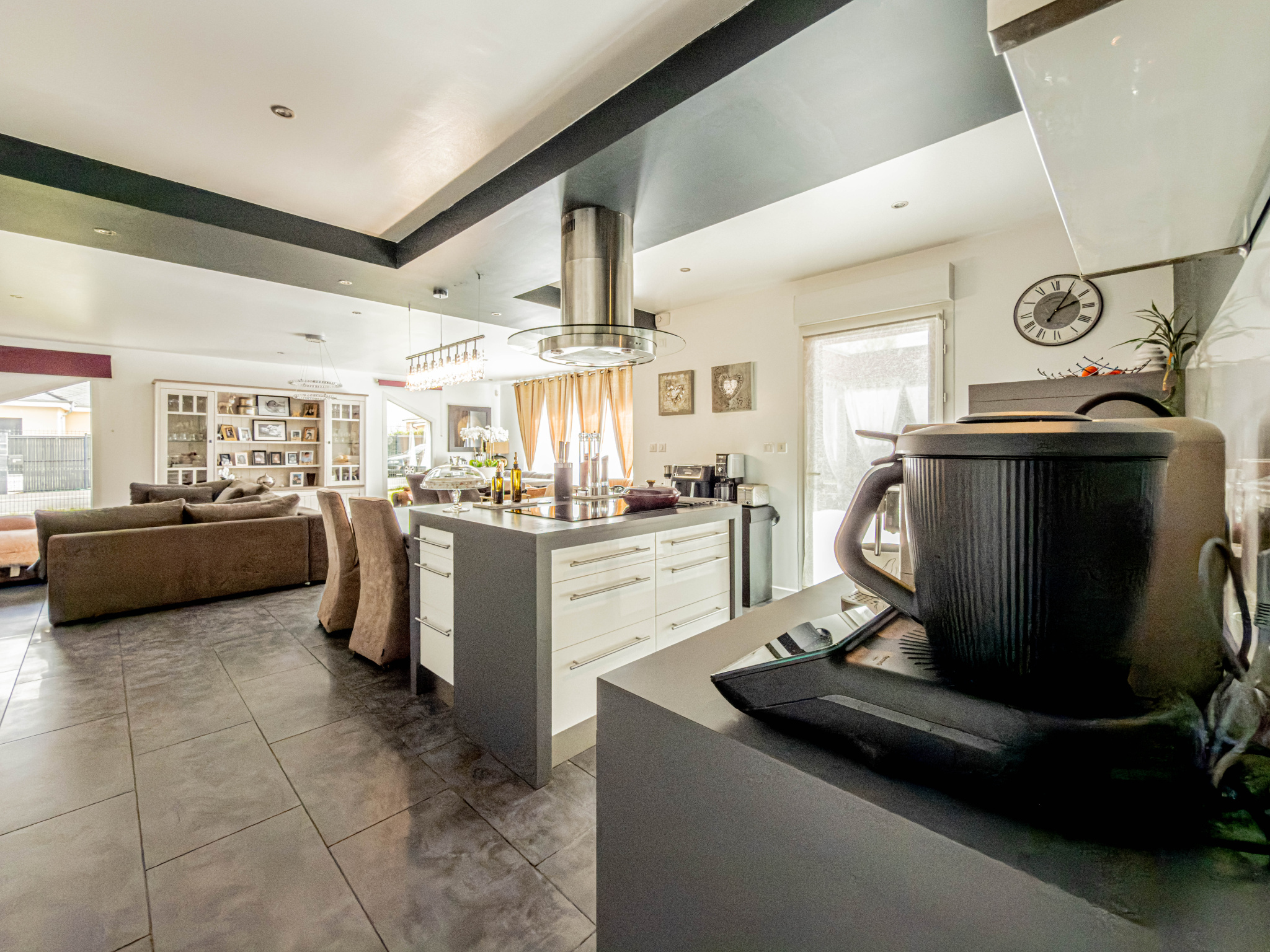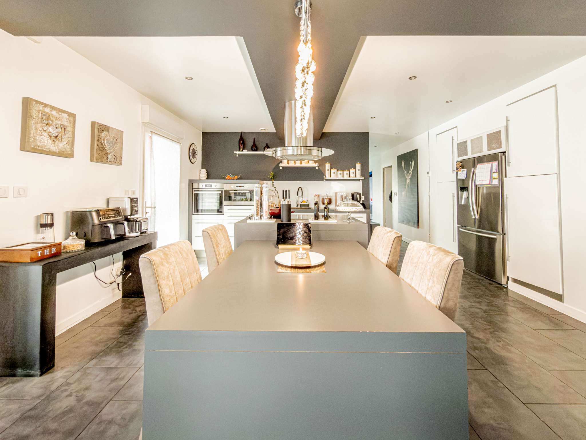- Une grande cuisine ouverte avec îlot central, parfaite pour les repas en famille et les moments conviviaux