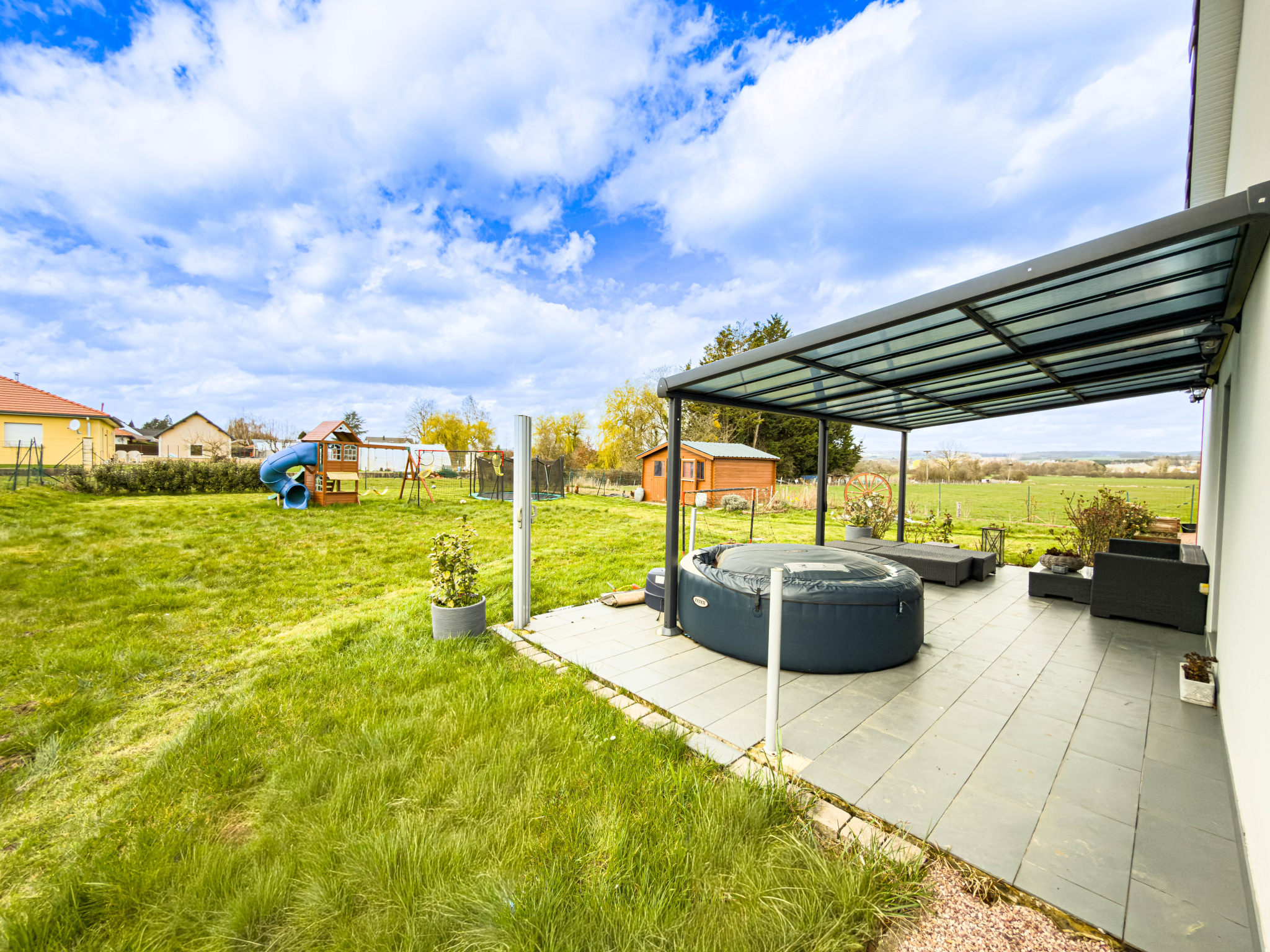 - Un grand jardin qui entoure entièrement la maison